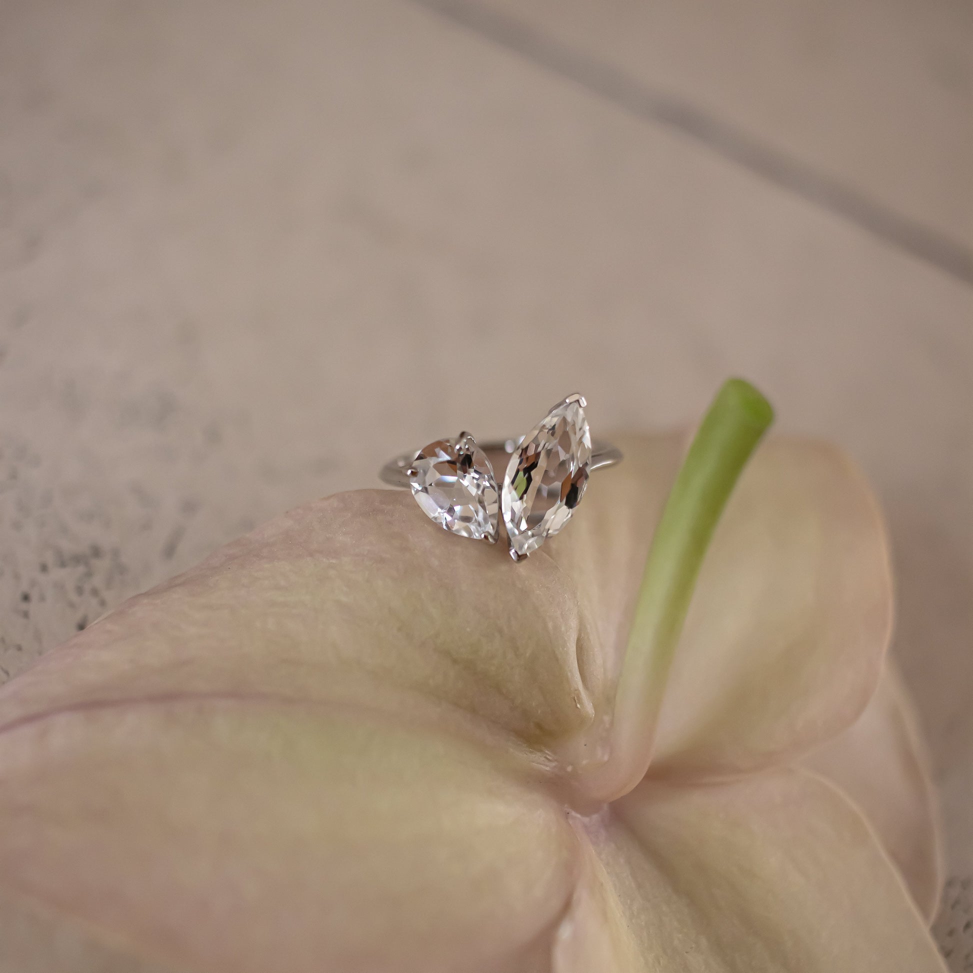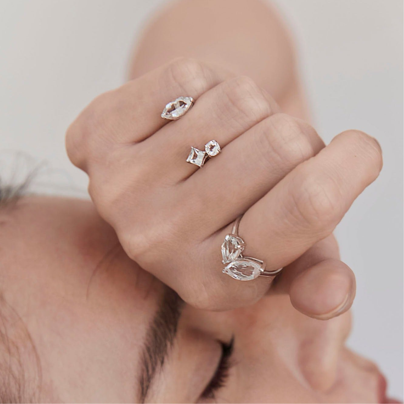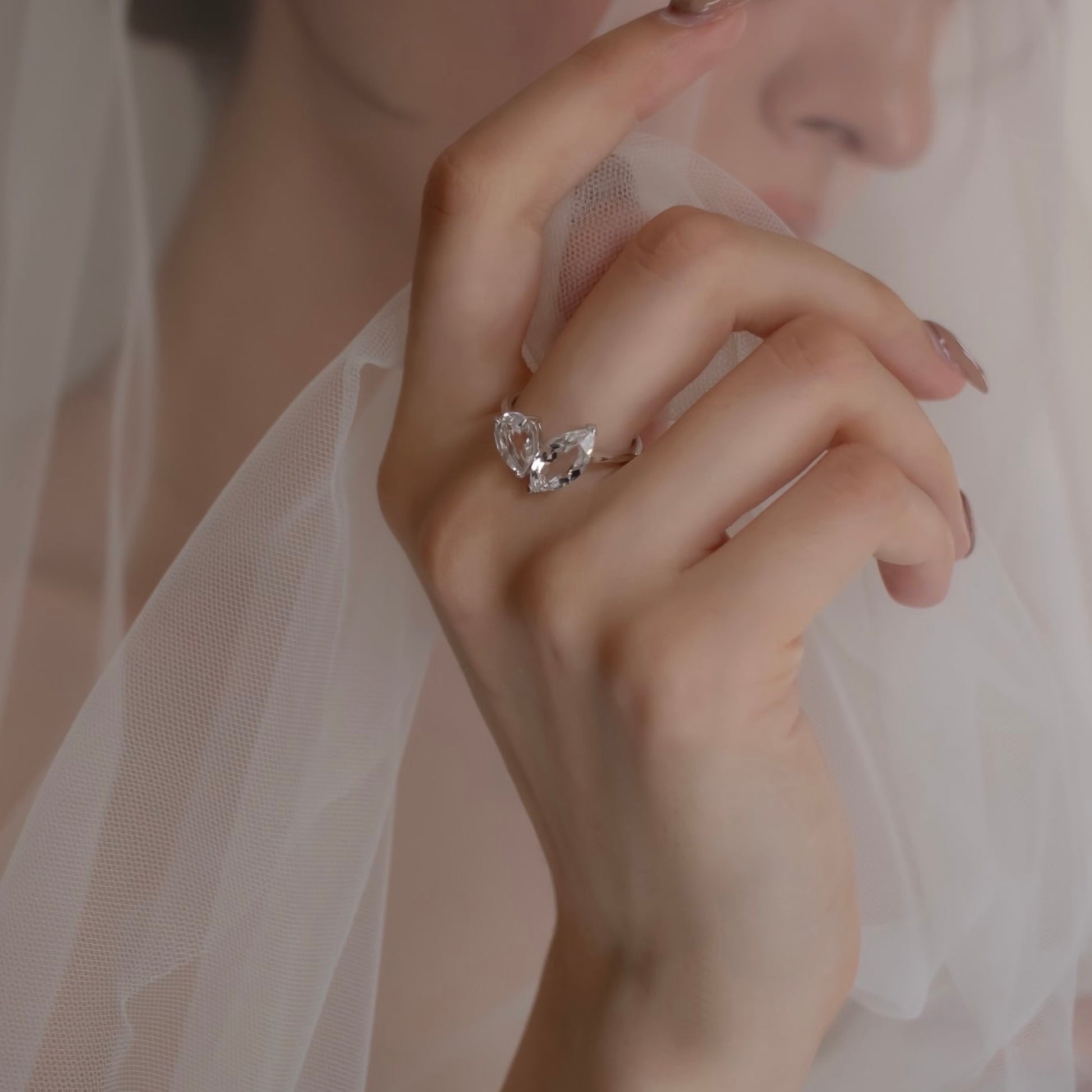 2つの石が寄り添い、ハートモチーフのように見えるリング。