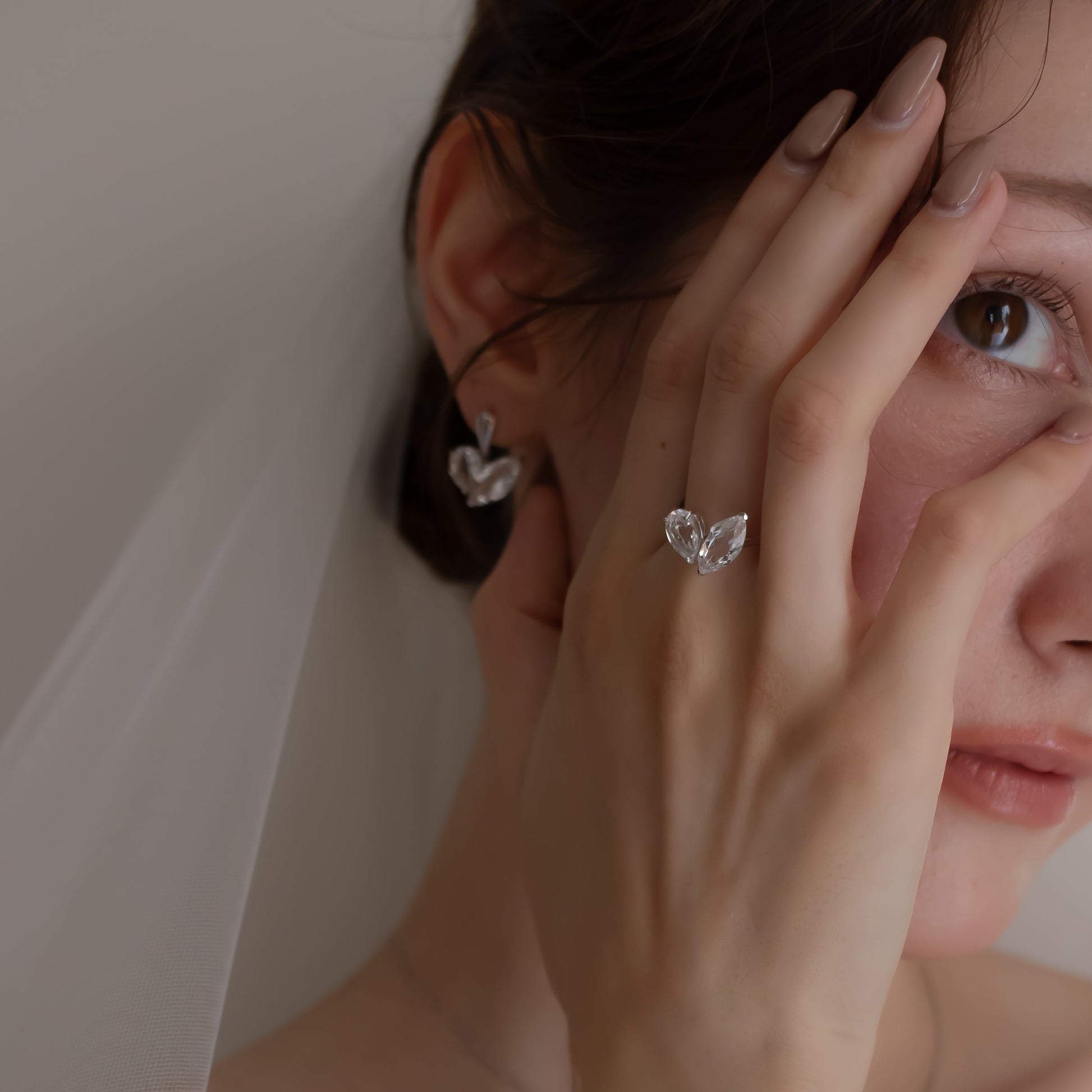 寄り添う石が形作るハートモチーフのピアス。